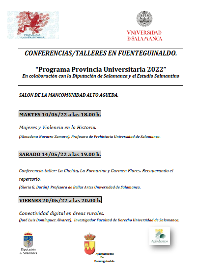 Las conferencias/talleres de Fuenteguinaldo tendrán lugar en el Salón Multiusos de la Mancomunidad, siendo las siguientes: